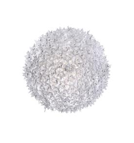 Kartell Design. Ferruccio Laviani Dimensions : Ø 28/53/80 x h 19/.../51,5 cm Bloom de Kartell se compose d'un squelette tubulaire entièrement recouvert d'une structure formée de petites fleurs à double corolle en polycarbonate transparent. Le résultat est une lampe produite industriellement mais avec les formes et la complexité stylistique d'une pièce unique, artisanale. Des ampoules placées à l'intérieur de la structure diffusent, à travers les pétales, le faisceau lumineux qui se réfléchit sur les surfaces facettées des fleurs en donnant naissant à mille reflets. MATÉRIAU Technopolymère thermoplastique transparent ou teinté dans la masse lampe plafonnier