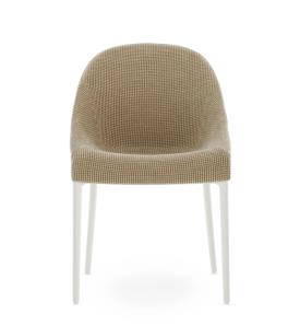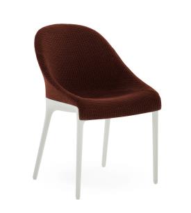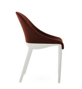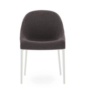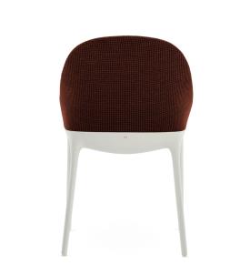 Kartell Design. Philippe Starck Dimensions : l 55 x h 87 x p 55 cm Le charme discret de l’élégance Philippe Starck redessine les traits essentiels du style italien pour Kartell avec une chaise intemporelle unissant l’univers de la Haute Couture et de l’élégance. Signes distinctifs : discrétion raffinée, douceur et fluidité. Le petit fauteuil rembourré se décline en deux versions, ELEGANZA NIA et ELEGANZA ELA : deux formes sinueuses et légères sublimant le tissu habillant délicatement les lignes du fauteuil. Le tissu est chiné ou en faux cuir tandis que les pieds sont noirs ou blancs. STRUCTURE Technopolymère thermoplastique teinté dans la masse, issu du recyclage post-industriel des capsules Illy et recyclable pour la version noire. ASSISE Revêtement en polyuréthane partiellement recyclé post-industriel.