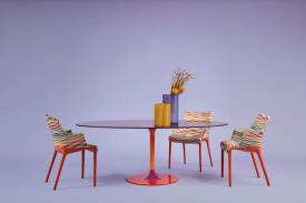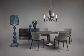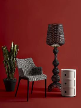 Le charme discret de l’élégance Philippe Starck redessine les traits essentiels du style italien pour Kartell avec une chaise intemporelle unissant l’univers de la Haute Couture et de l’élégance. Signes distinctifs : discrétion raffinée, douceur et fluidité. Le petit fauteuil rembourré se décline en deux versions, ELEGANZA NIA et ELEGANZA ELA : deux formes sinueuses et légères sublimant le tissu habillant délicatement les lignes du fauteuil. Le tissu est chiné ou en faux cuir tandis que les pieds sont noirs ou blancs.