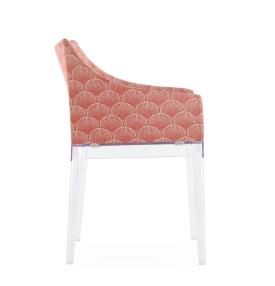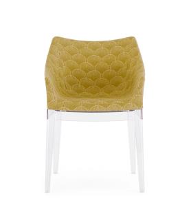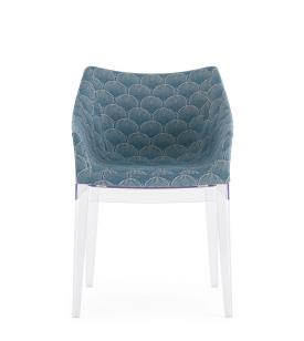 Kartell Design. Philippe Starck Dimensions : l 54 x h 80 x p 53 cm Madame, la célèbre de Philippe Starck, se présente dans une combinaison captivante du tissu Liberty « Fanfare » avec les nouvelles structures de jambes, proposées dans les tons riches et enveloppants de Moutarde, Rouge et Bleu, qui accompagnent la version noire et transparente. Une rencontre sublime entre tradition et modernité, qui transforme chaque environnement en une œuvre d'art intemporelle. « Fanfare » est un tissu extraordinaire inspiré d’un précieux fragment d’archives datant des années 1880 et présentant un motif géométrique sophistiqué d’éventails de style asiatique. Le mélange raffiné de couleurs et la texture particulière du matériau confèrent à ce motif une élégance intemporelle, le rendant parfait pour réinterpréter le fauteuil. STRUCTURE Polycarbonate transparent ou teinté dans la masse ASSISE Polyuréthane recouvert de tissu Liberty® en fibres naturelles petit fauteuil