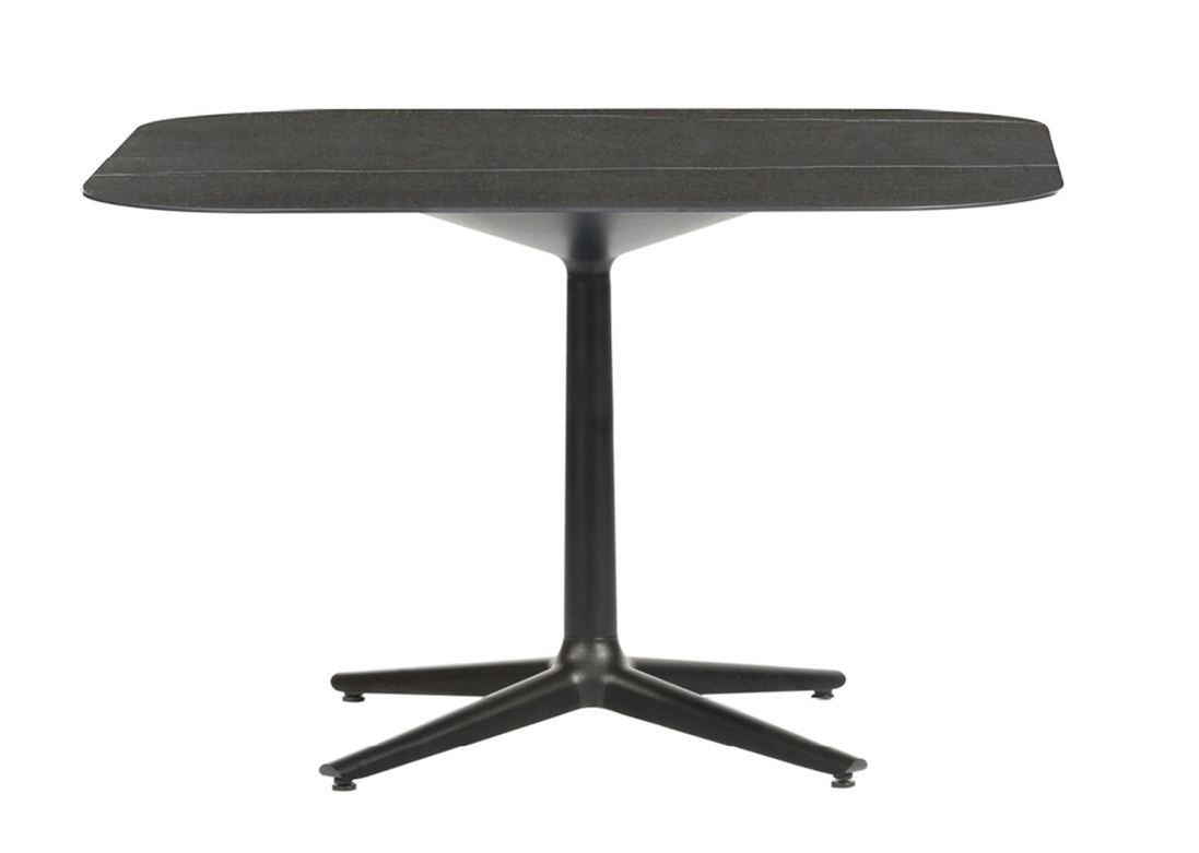 Kartell Design Antonio Citterio Dimensions : l 99 x h 74 x p 99 cm Multiplo est une très large collection de tables, aux applications transversales, pensées pour être personnalisées, en jouant sur les formes (carrées aux coins arrondis, rondes et ovales) et la combinaison de piètements (piètement central, à deux, trois ou quatre branches) et de plateaux (en grès uni ou finition marbre et verre). table
