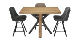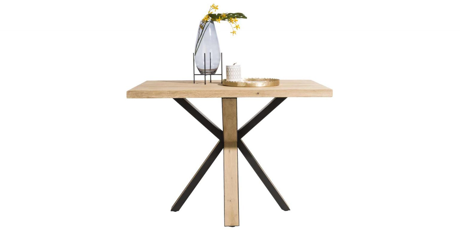 Principales matières, essences ou matériaux : Plateau en panneaux de particules plaqué chêne. Piétement en chêne et métal.